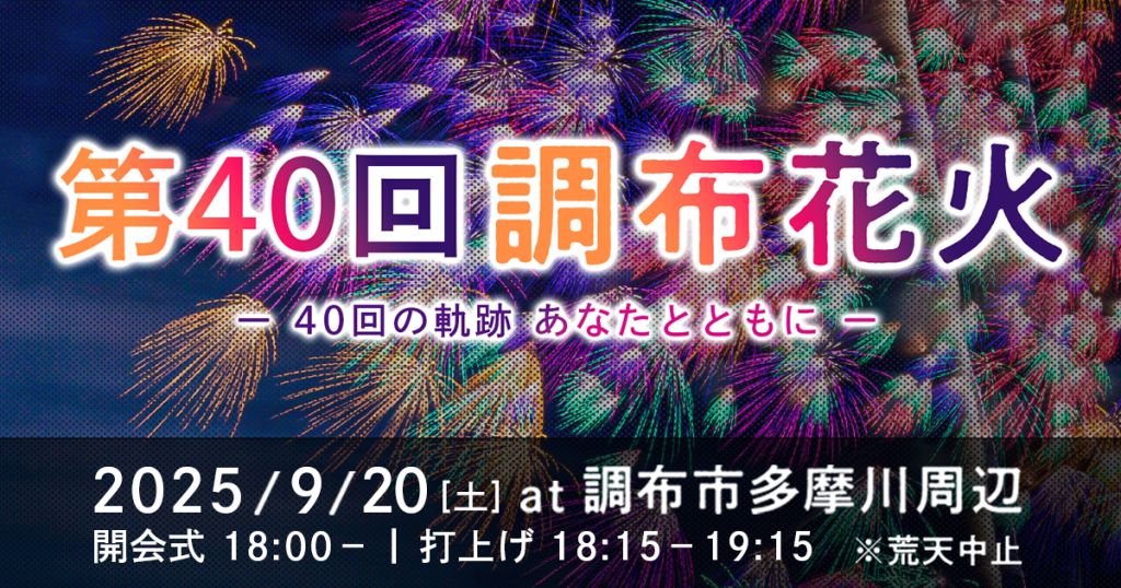 調布花火大会は、9月20日(土)18時30分から打ち上げが始まり、約1時間にわたって開催されます。