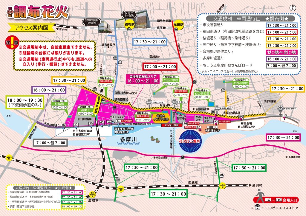 メイン会場となる多摩川河川敷(布田会場・京王多摩川会場)までは、