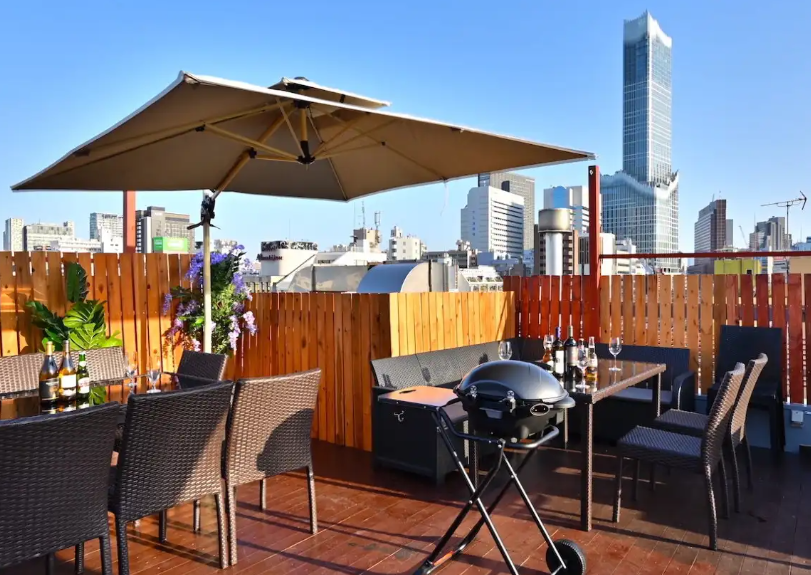 - 7階ルーフトップテラスで一部エリアにパラソル・屋根付き